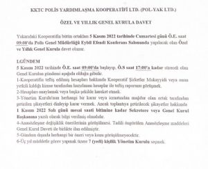 POLYAK Genel Kurulu 5 Kasım 2022 Cumartesi günü yapıldı KKTC POLİS YARDIMLAŞMA KOOPERATİFİ LTD. (POLYAK LTD.) Özel ve Yıllık genel kurul Polyak Koop2022-12-08T15:10:23+03:00